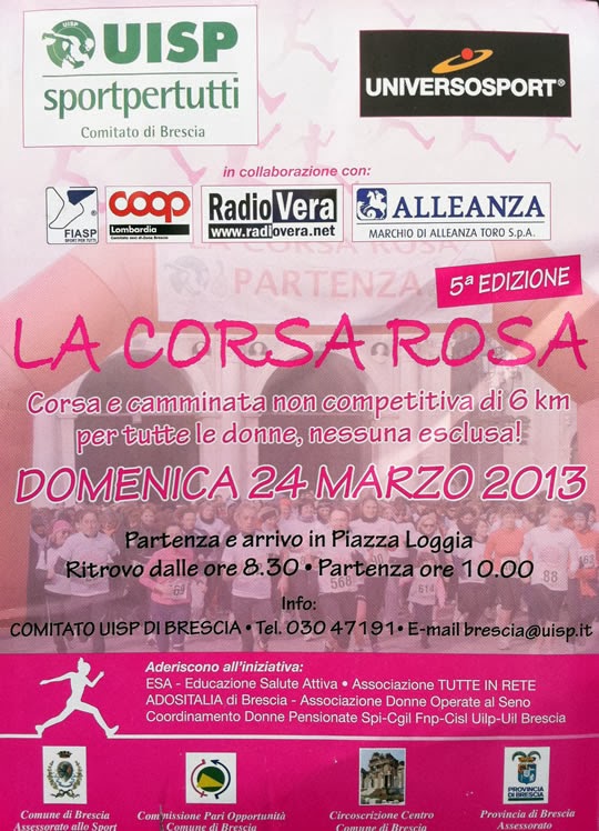 In attesa delle fotografie ufficiali, da fonti certe sono in possesso di alcuni dati non confermati, la 1 corsa di San Valentino a Brescia nella categoria femminile è stata vinta da Barbara, nella categoria coppie innamorate da Richi e la Enri, della categoria coppie non innamorate non ho il risultato. Ma la vittoria più bella del CUS è stata quella della categoria della più giovane partecipante: Viviana e il suo passeggino BRAVISSIMA.