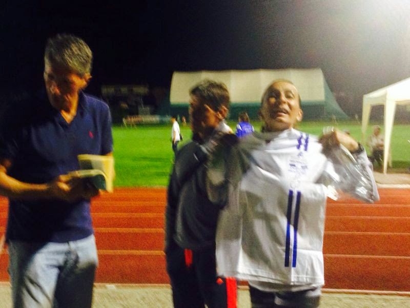 A Nave l'aria di casa fa volare Enrica Carrara, che in pista (ma seret mia straca!!!) vince nei 3000 mt. con un tempo strepitoso (10:42'92), poi non paga, fa da lepre, fuori pista, e solo per 2000 mt al grande Marco Peluchard Comincini spingendolo (per sua ammissione) a vincere la propria batteria e a classificarsi, nel suo esordio in pista, con un bellissimo tempo (10:33'34) al 26 posto generale. Bravissimi .