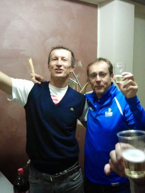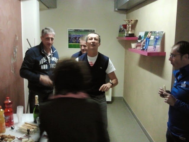 Come ormai consuetudine, dopo l'allenamento in pista, nella Club House è tempo di festeggiamenti con fiumi di alcool e ottimo cibo (in special modo il salame in stick). Questa volta è il turno del guerriero Maurizio Bertoni dopo la sua immensa gara in Maratona.