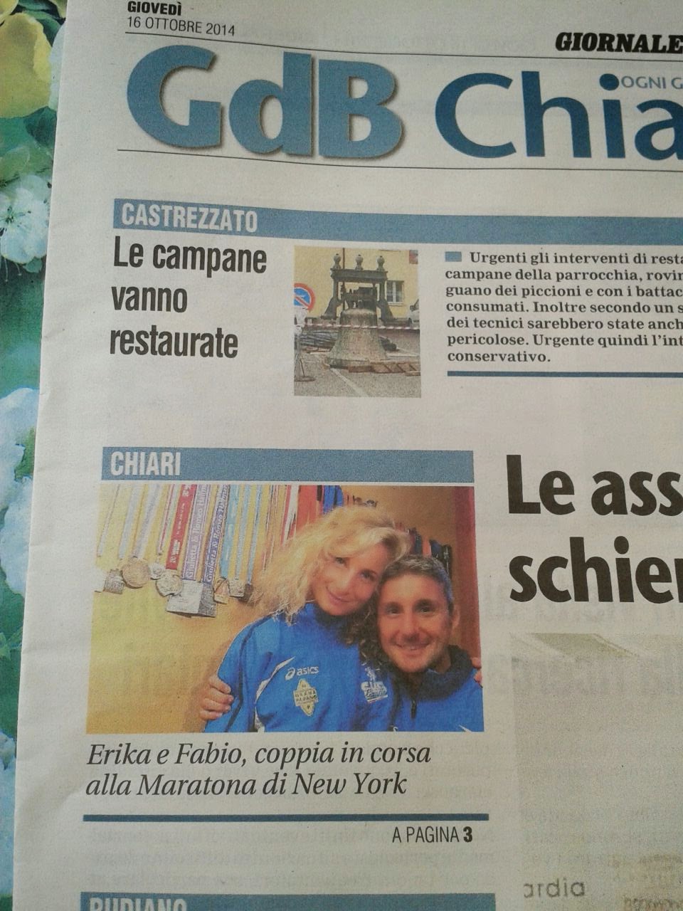 Domenica si correrà a New York la Maratona più famosa al mondo, per il CUS parteciperà la coppia Erika Cittadini e Fabio Rossi. Ormai famosi dopo la vittoria nella propria categoria alla maratona dell'acqua, il Giornale di Brescia dedica a loro ampio spazio. A loro un grosso in bocca al lupo, soprattutto ad Erika che si cimenterà per la prima volta sulla grande distanza. Forza ragazzi!!!