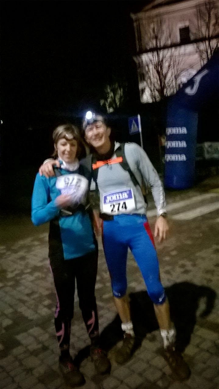 A Monticelli Brusati ieri sera grandissima impresa della coppia d'oro Elena Ratti e Maurizio Bertoni, che hanno partecipato alla prima edizione del trail notturno di 25,5 Km. In queste gare, non è importante la classifica, che per ora non è disponibile, ma portarla a termine, fino in fondo!! La fantastica coppia ha chiuso la competizione in 4h20' in un percorso "leggermente" fangoso, un applauso a Maurizio che stamattina si è presentato puntuale alla corsa Telethon, dimostrando di essere in grado di reggere una doppietta; ad Elena invece una standig ovation perché, dimostrando ancora una volta la superiorità del genere femminile, è rimasta a casa a fare almeno cinque o sei cose, che un uomo normalmente riuscirebbe a fare in tre/quattro giorni