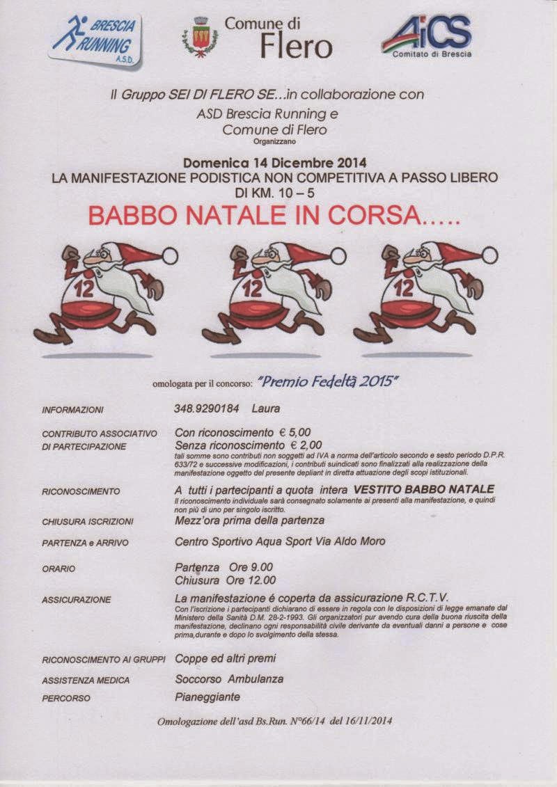 Flero - Babbo Natale in corsa - Non competitive AICS-BsR di km 5 e 10 - Partenza ore 9,00 dal Centro Sportivo Aqva Sport in Via Aldo Moro