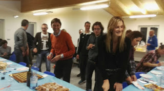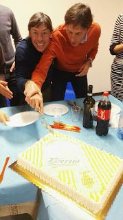 L'idea è nata dopo gli allenamenti del Mercoledì, perché non facciamo uno spiedo nella nuova Club House? Poi l'idea ieri sera è diventata concreta, grazie alla perfetta macchina organizzativa, tenuta egregiamente sotto controllo da Franco, e soprattutto grazie allo spiedista Vittorio (reclutato nel CUS a furor di popolo) ben coadiuvato dal fratello Beppe. Quindi tutto è andato per il meglio, spiedo perfetto, divertimento e simpatia