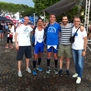 all'uscita della frazione di nuoto con frasi ad effetto come:"Come mai così tardi? ti sei fermato a parlare con i gabbiani?" ma spinto sopratutto sul percorso della 10 Km, dove il Team si è scatenato (complici i numerosi integratori leggermente alcolici ingeriti) coinvolgendo il numeroso pubblico presente!!!Comunque a parte gli scherzi grandissimo Franco per l'ennesima impresa della stagione e un grandissimo applauso anche a Marco Domenighini una vera forza della natura in gara!!!!