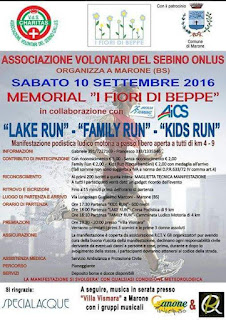 Sabato 10 Settembre Gabriele Campana e Francesco Milanesio sono tra gli organizzatori di questa corsa non competitiva a Marone, per ricordare una persona scomparsa, secondo il loro imparziale ed insidacabile giudizio il percorso è meraviglioso!!!Da sottolineare, cosa importantissima, che a fine corsa ci sarà pane e salamina ascoltando musica dal vivo!!!