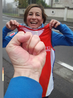 d'animo, peccato per Stefania Marcozzi che nonostante i numerosi corazzieri che la circondavano, non riesce ad abbassare il PB, bravissima Elena Gaffurini per l'occasione adottata dal CUS. Come sempre magnifica Rosa Dimaria ad aspettare la sua dolce metà Fausto Zola che mette a frutto gli ottimi risultati sui 1.000 metri del mercoledì (cominciati alle 18.30 chiusi con il terzo mille dal custode che lo obbligava ad andare negli spogliatoi perché a mezzanotte finiva il turno!!) e conclude magnificamente sotto le due ore...